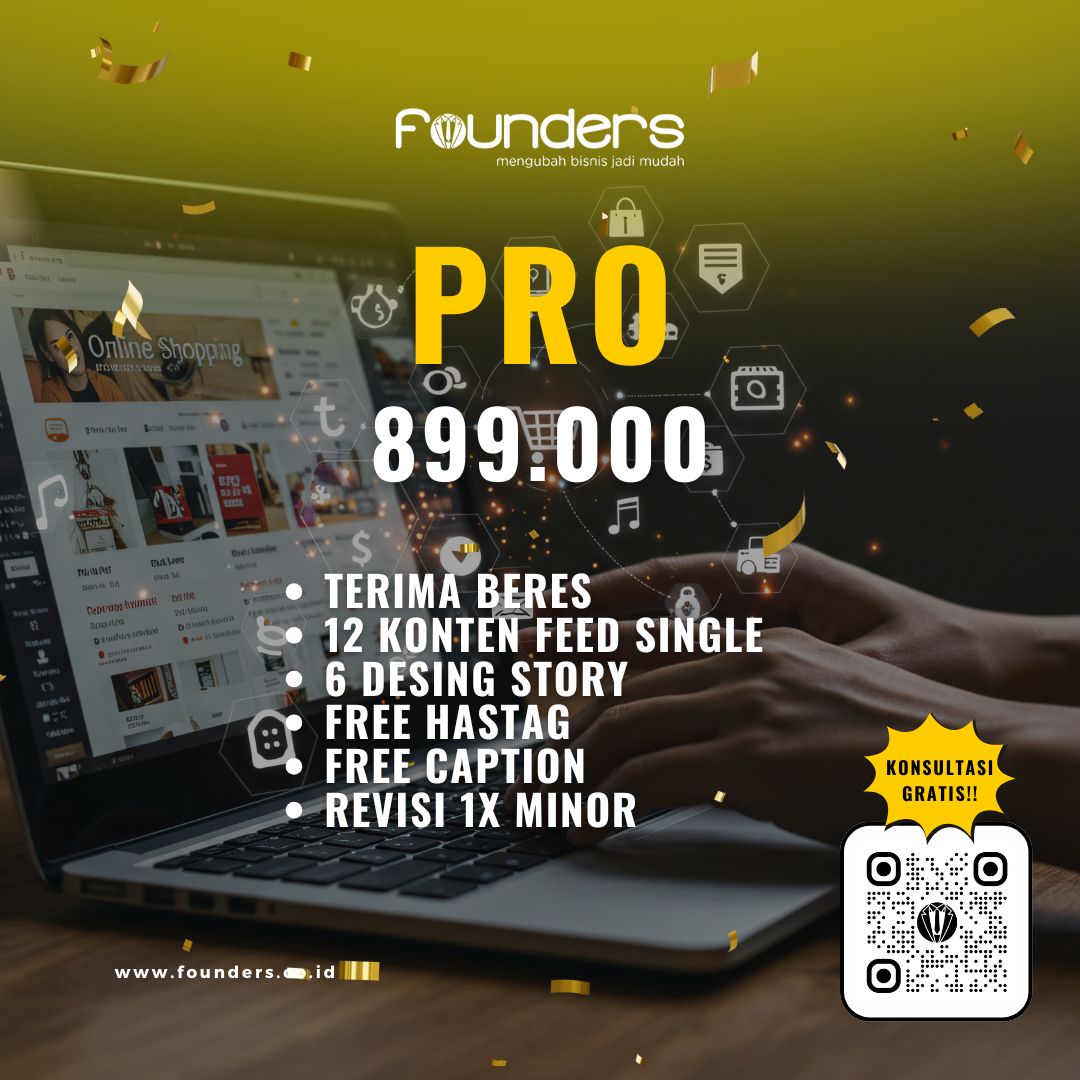 Dengan layanan Jasa Desain Media Sosial dari Founders, Anda tak perlu repot memikirkan desain, caption, maupun hashtag. Semua sudah kami siapkan sehingga Anda cukup posting dan fokus mengembangkan bisnis.